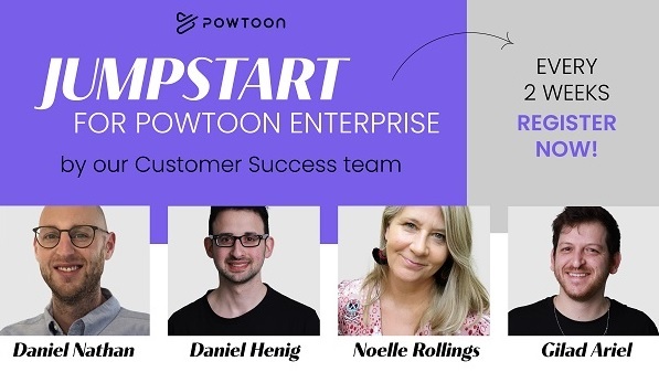 Powtoon Enterprise Jumpstart Platform Demo On-Demand Take a spin around the Powtoon Business platform. Engineered for teams and larger... Powtoon Enterprise Jumpstart Platform Demo On-Demand Take a spin around the Powtoon Business platform. Engineered for teams and larger organizations, Powtoon Business unlocks the power of visual communication for your entire team. In this step-by-step training, our Customer Success team demos Powtoon’s optimized video templates and show you how to...