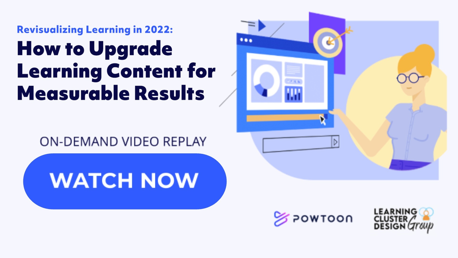 Revisualizing Learning for 2022 | Powtoon & The LCD Group In this session, Powtoon’s Head Creator for Video & Learning, Nick Liebman,... Revisualizing Learning for 2022 | Powtoon & The LCD Group In this session, Powtoon’s Head Creator for Video & Learning, Nick Liebman, hosts Crystal Kadakia, CEO of the LCD Group and co-creator of the Learning Cluster Design Model. This this session, we cover: A powerful new model for learning Why video is so important for your 2022 plan How...