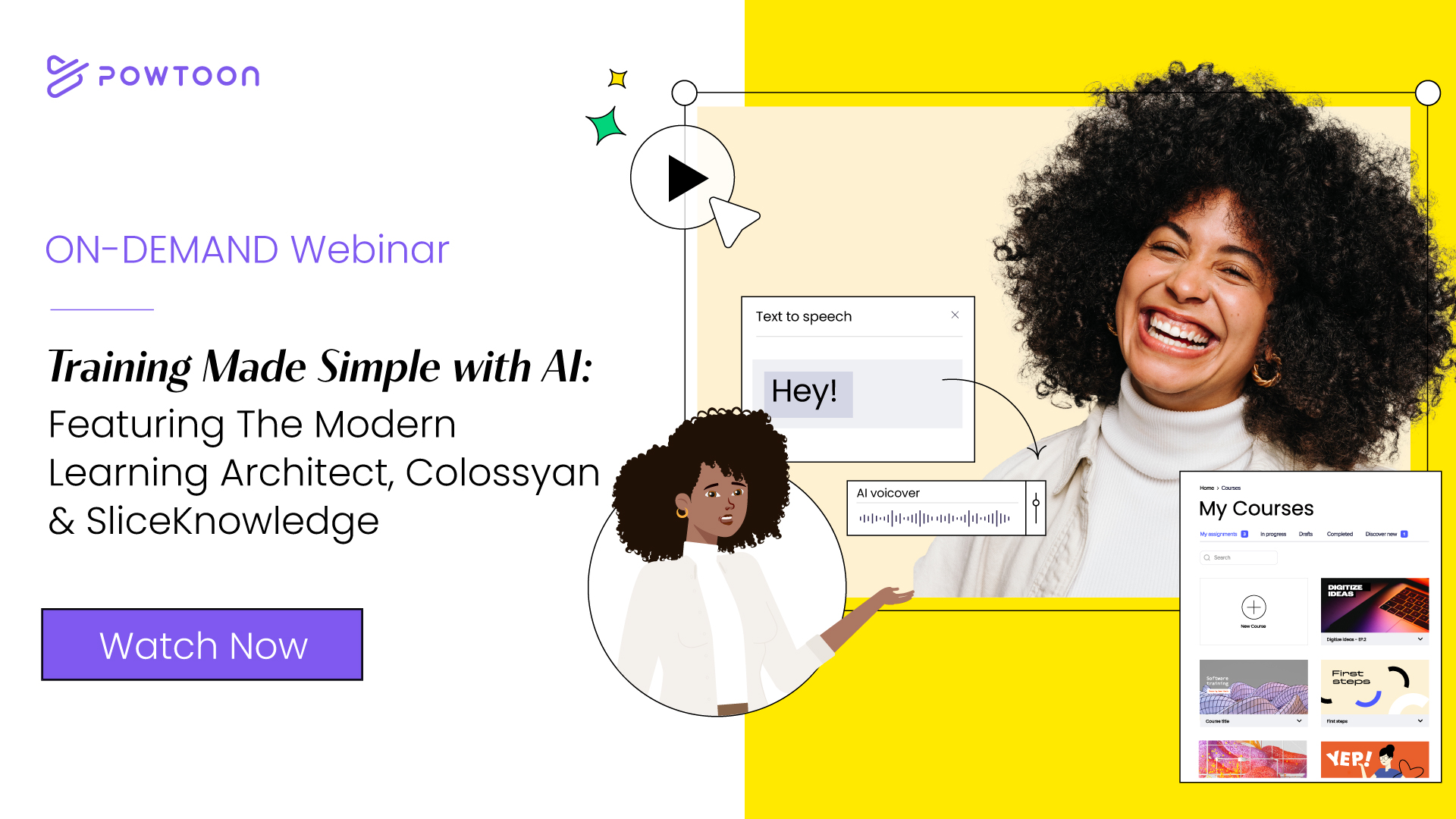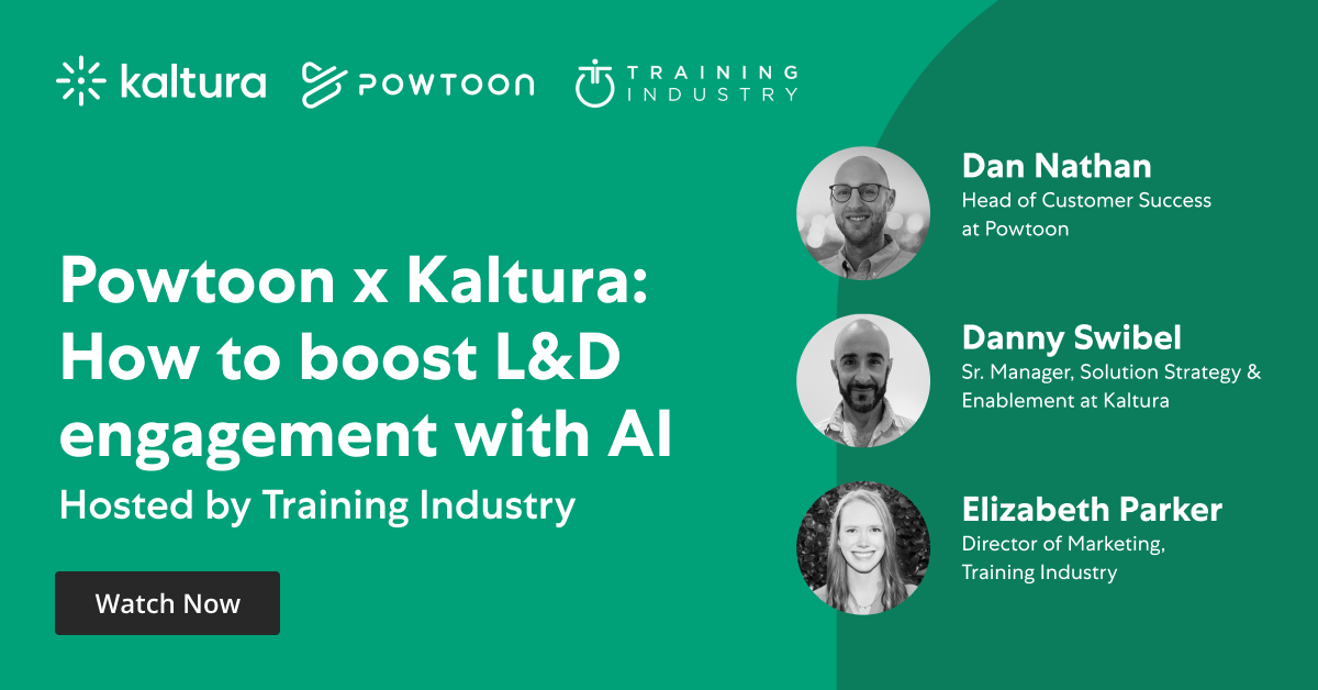 Powtoon X Kaltura: How to boost L&D engagement with AI Embark on an enriching journey into the world of AI and Learning & Development!... Powtoon X Kaltura: How to boost L&D engagement with AI Embark on an enriching journey into the world of AI and Learning & Development! Partnering with Kaltura and Training Industry, we’re thrilled to share a webinar that you won’t want to...