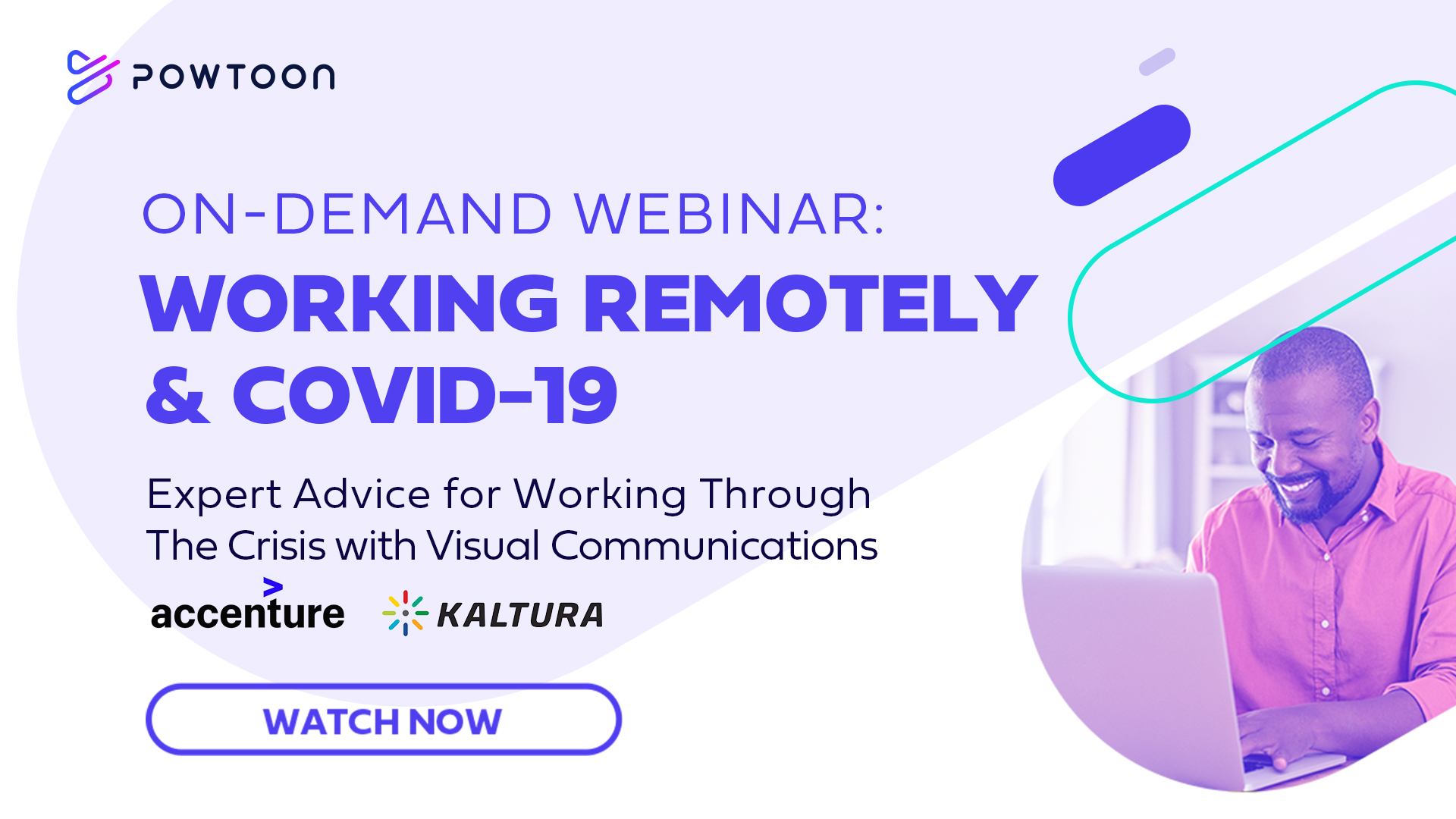 Remote Working & COVID-19 Working Through the Crisis with Visual Communications Companies around the world are shifting rapidly to remote working to combat the spread of... Remote Working & COVID-19 Working Through the Crisis with Visual Communications Companies around the world are shifting rapidly to remote working to combat the spread of COVID-19 pandemic. As this global experiment plays out, I want to invite you to join an important conversation on remote work. Hosts Nick & Dan from Powtoon welcome our expert panel: Ed Sparkes, Senior...