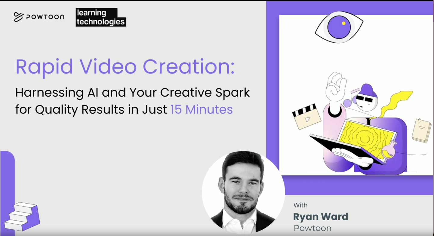 Rapid Video Creation: Harnessing AI and Your Creative Spark for Quality Results in Just 15 Minutes Join Ryan Ward, Account Executive, in a transformative 15-minute session that will... Rapid Video Creation: Harnessing AI and Your Creative Spark for Quality Results in Just 15 Minutes Join Ryan Ward, Account Executive, in a transformative 15-minute session that will revolutionise your approach to L&D challenges. “From Zero to Hero in 15 Minutes: Solving L&D’s Biggest Challenges” delves into innovative strategies for creating compelling training...