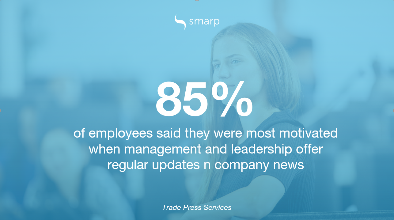 Because 85% of employees indicate that they’re most motivated when leadership offers regular updates on company news, frequent workplace communication is a must! Furthermore, 81% of employees say that they would rather choose a company that encourages open communication than a company that has good perks such as health plans, free food, and gym memberships.